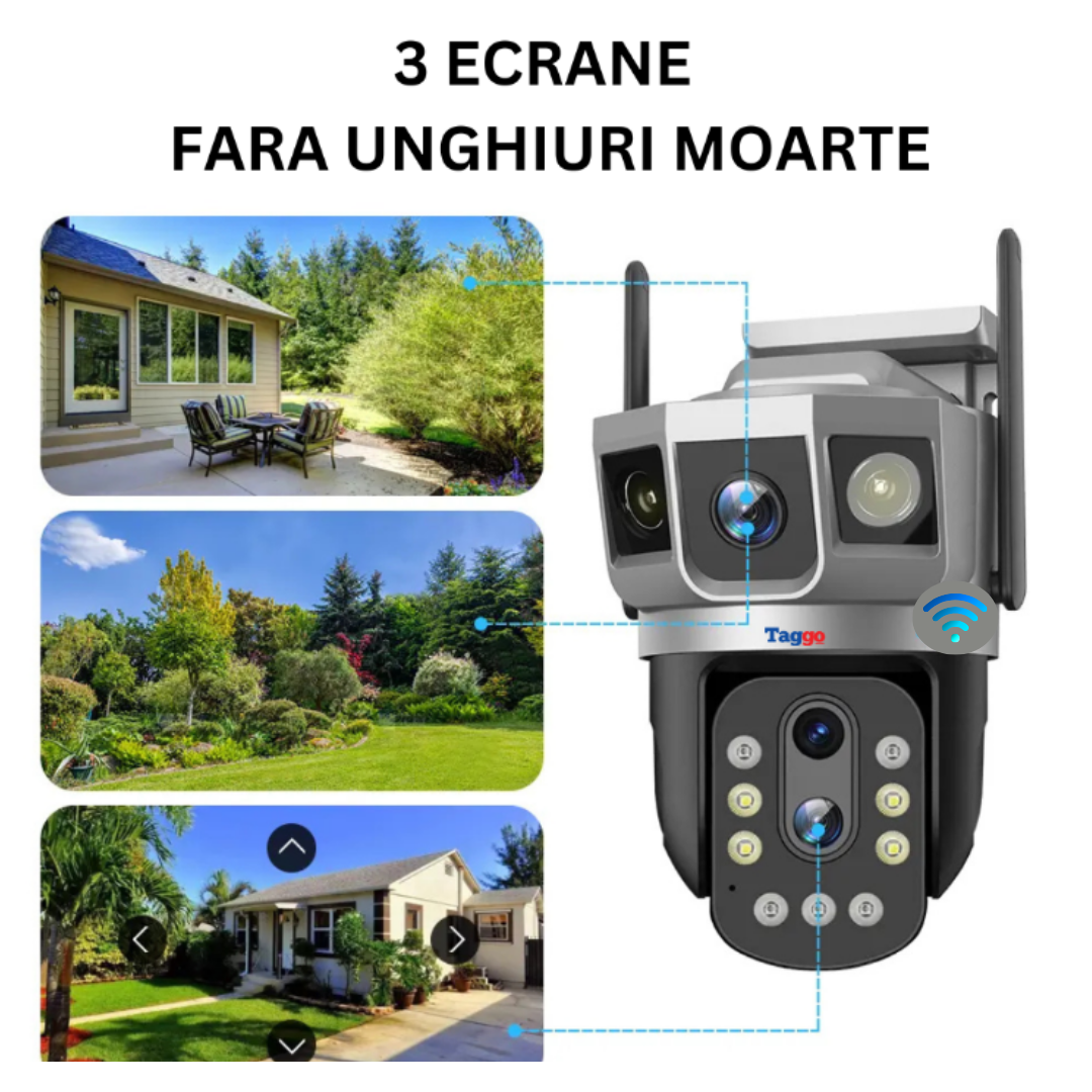 Camera de Supraveghere 4G. 3 lentile. 6K 12MP. Zoom 10x optic. Notificari. Control din Aplicatie. Urmarire Automata