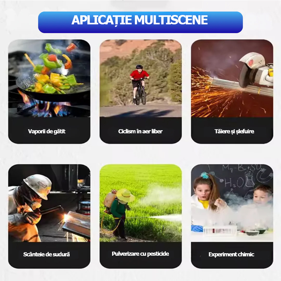 Nu vă faceți griji că praful fin, transpirația sau orice alte particule vă lovesc fața.