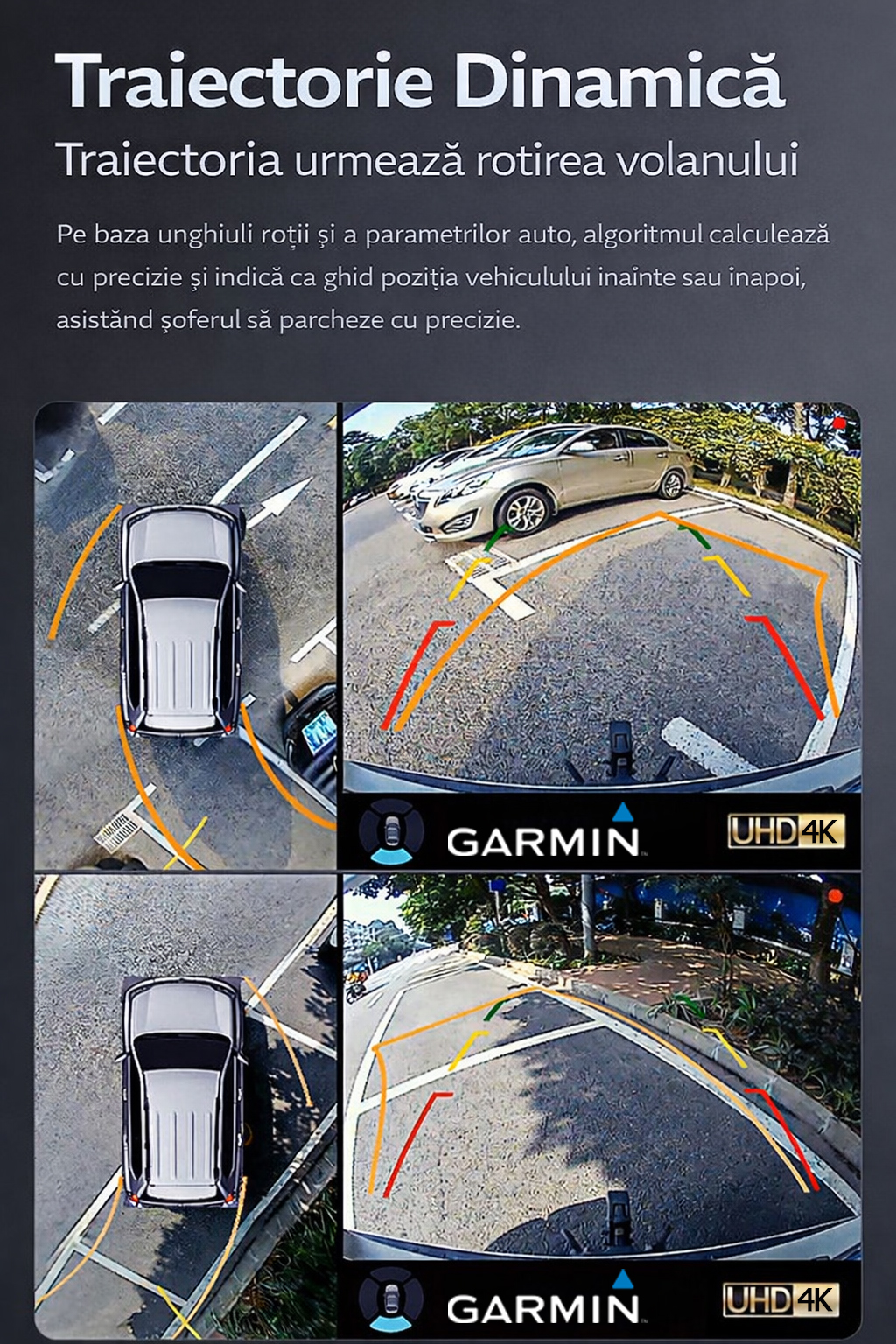 🚗 Indică exact poziția pe care mașina o va urma la mers înainte sau în marșarier